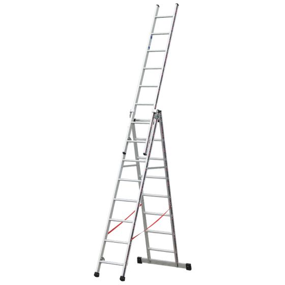 Alu večnamenske lestev 3-delna mod. S307 - število prečk: 3 x 8, dolžina lestve kot dvokraka lestev pribl. m: 2,33 m, dolžina lestve kot dvokraka lestev zvti?nim kosom pribl. m: 3,88 m, dolžina lestve kot 3-delna lestev pribl. m: 5,50 m